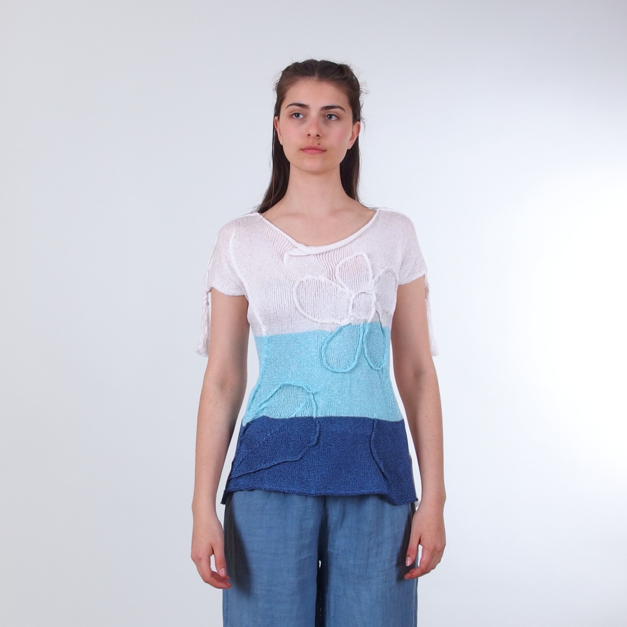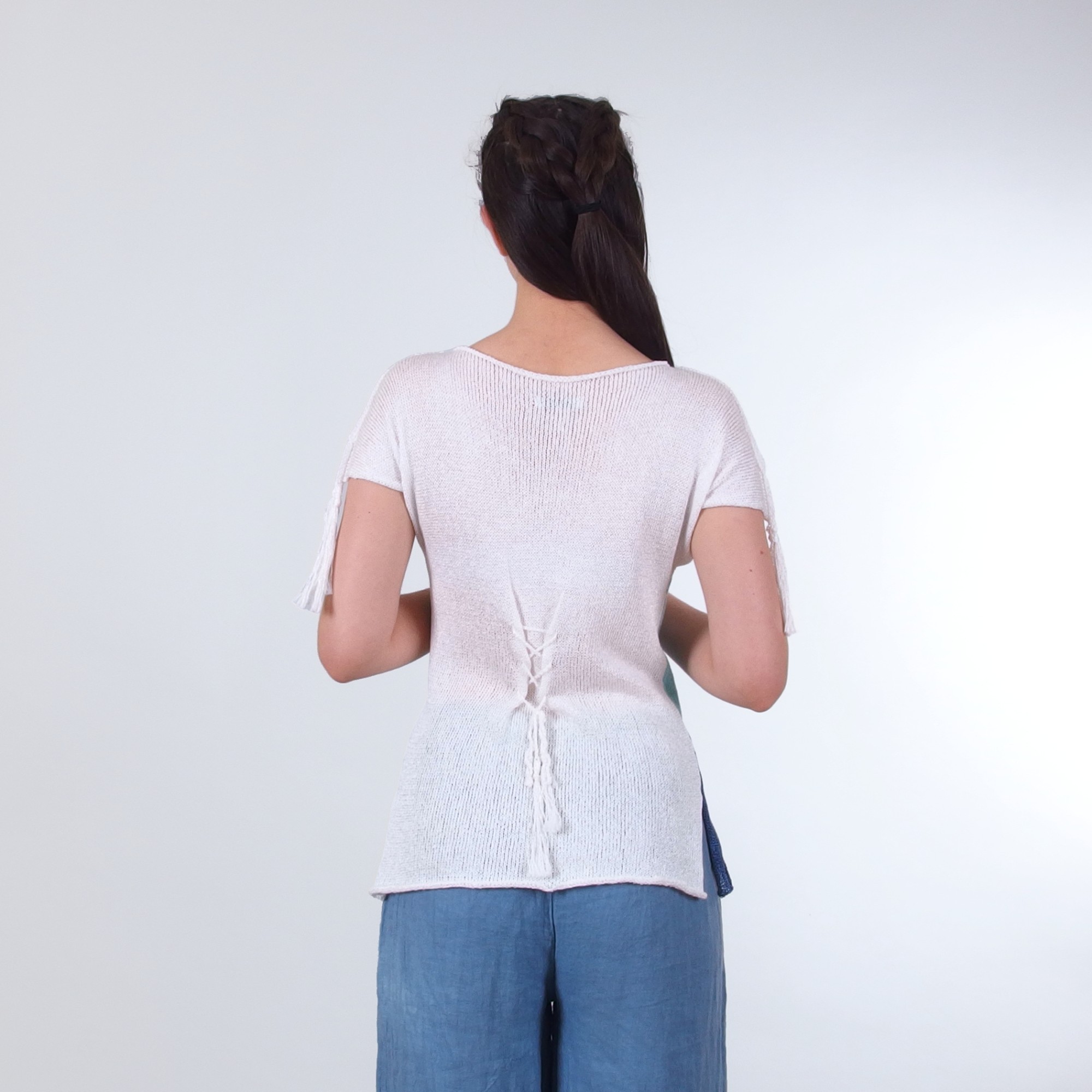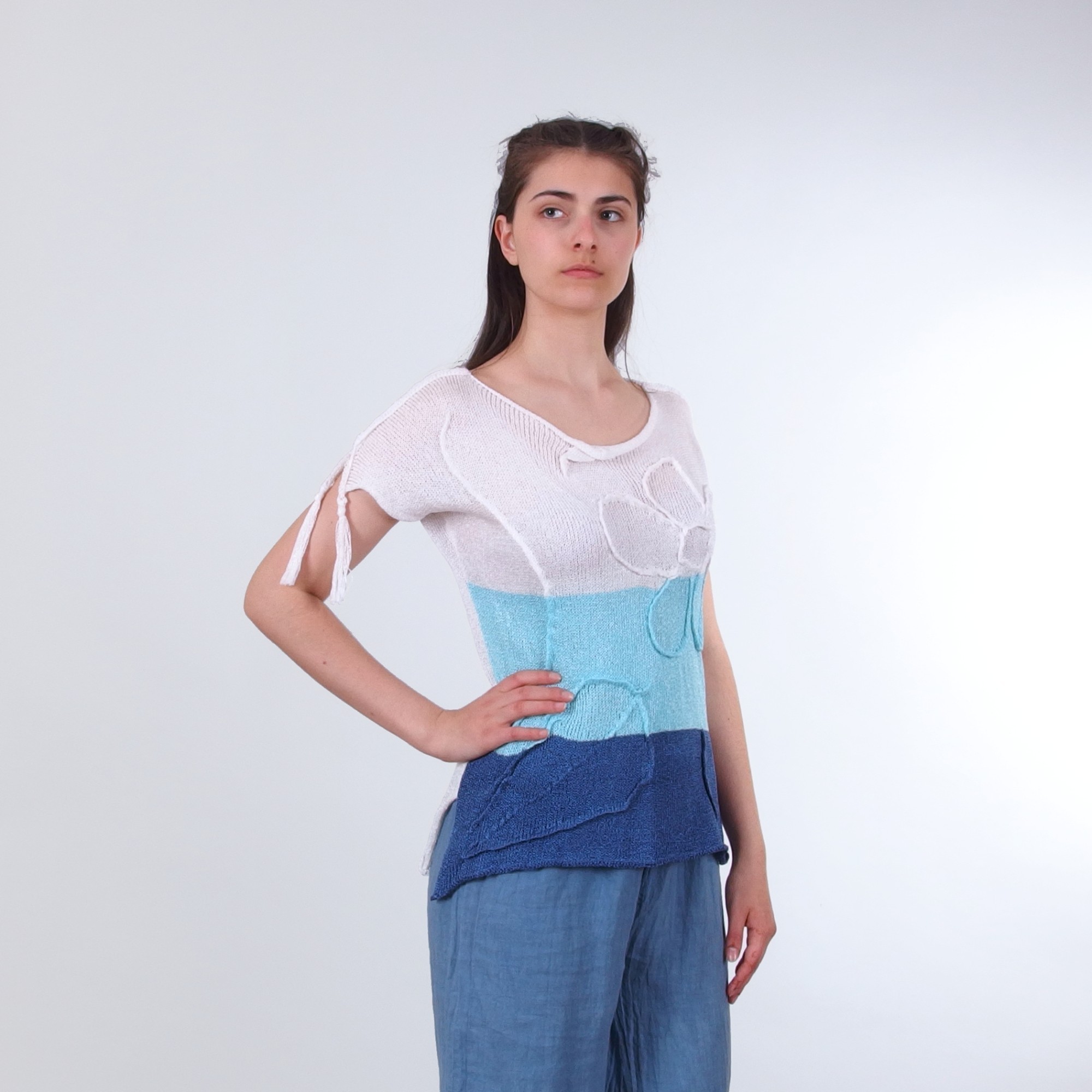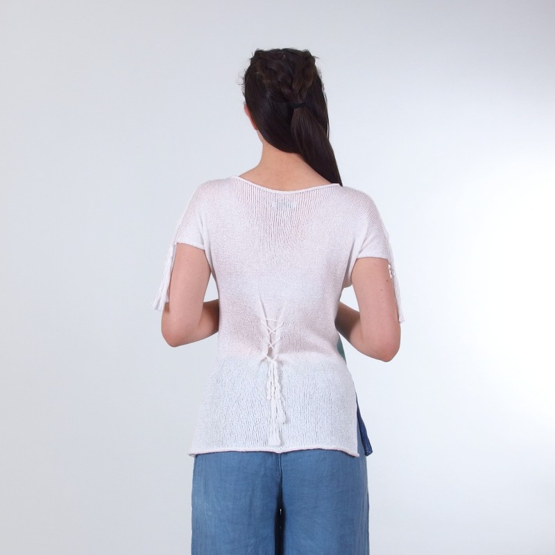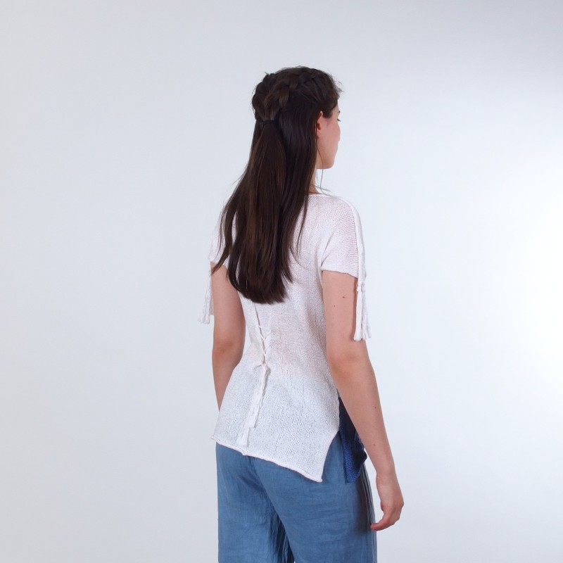 Блуза без ръкав с райета и пискюли