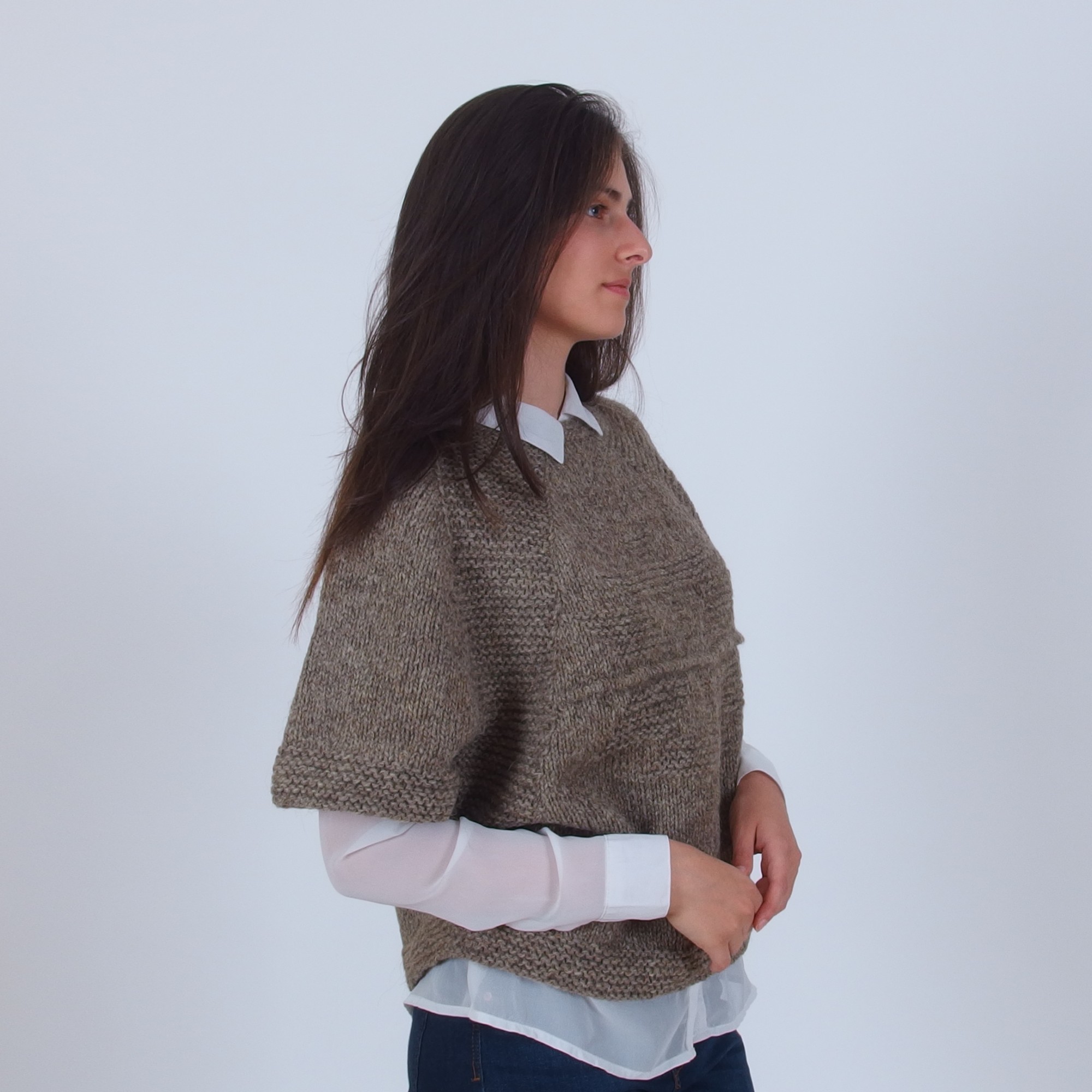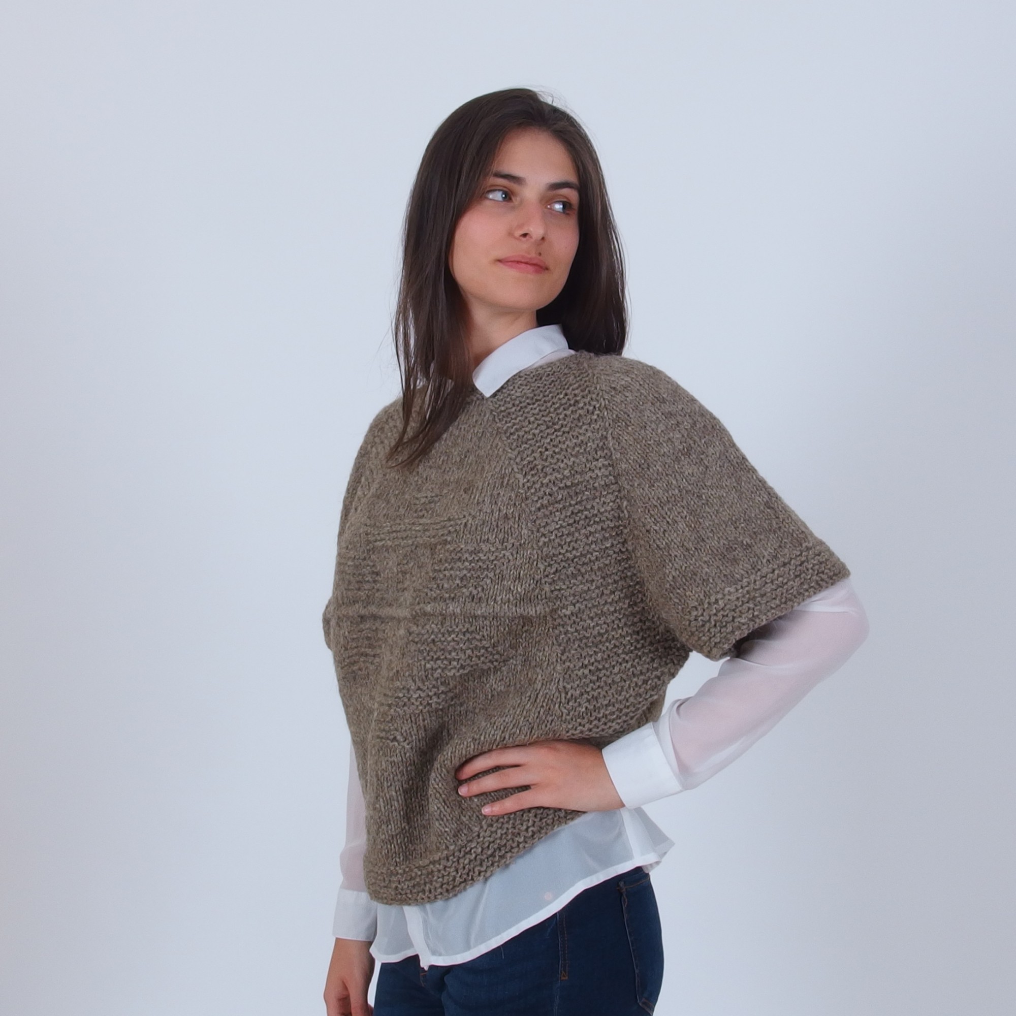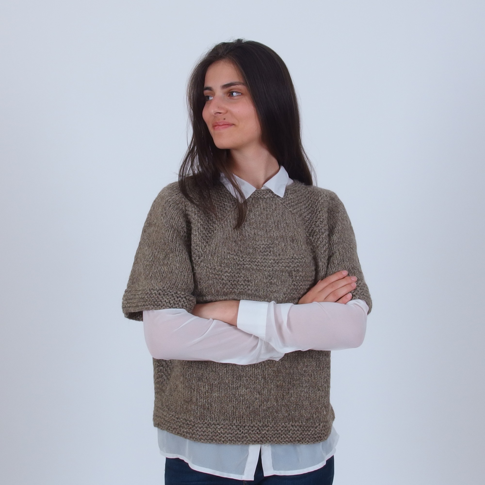 Пуловер с прилеп ръкави от естествена вълна