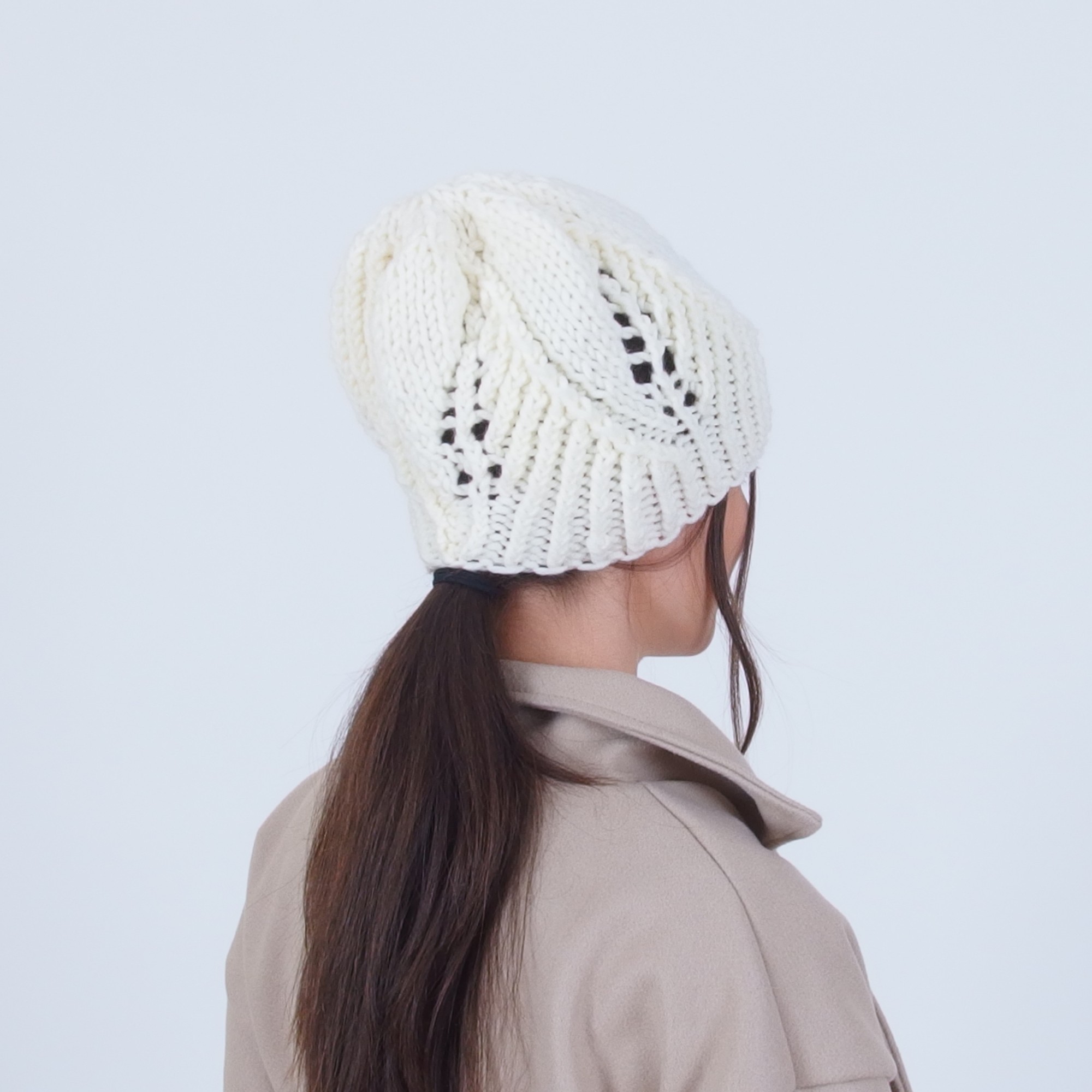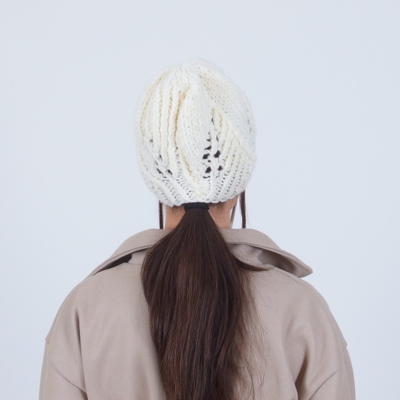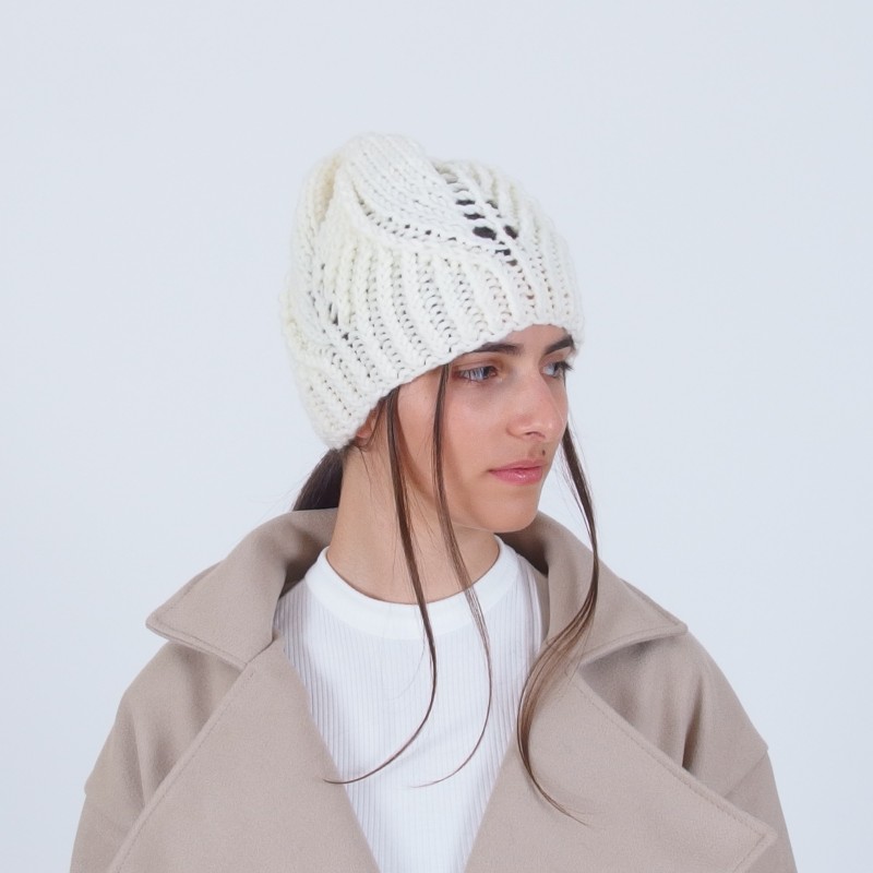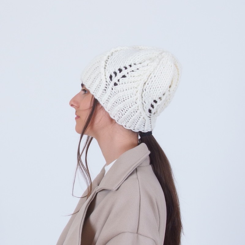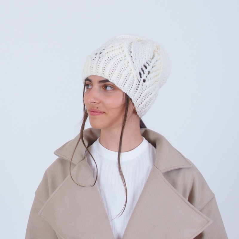 Плетена зимна дамска шапка с флорални мотиви