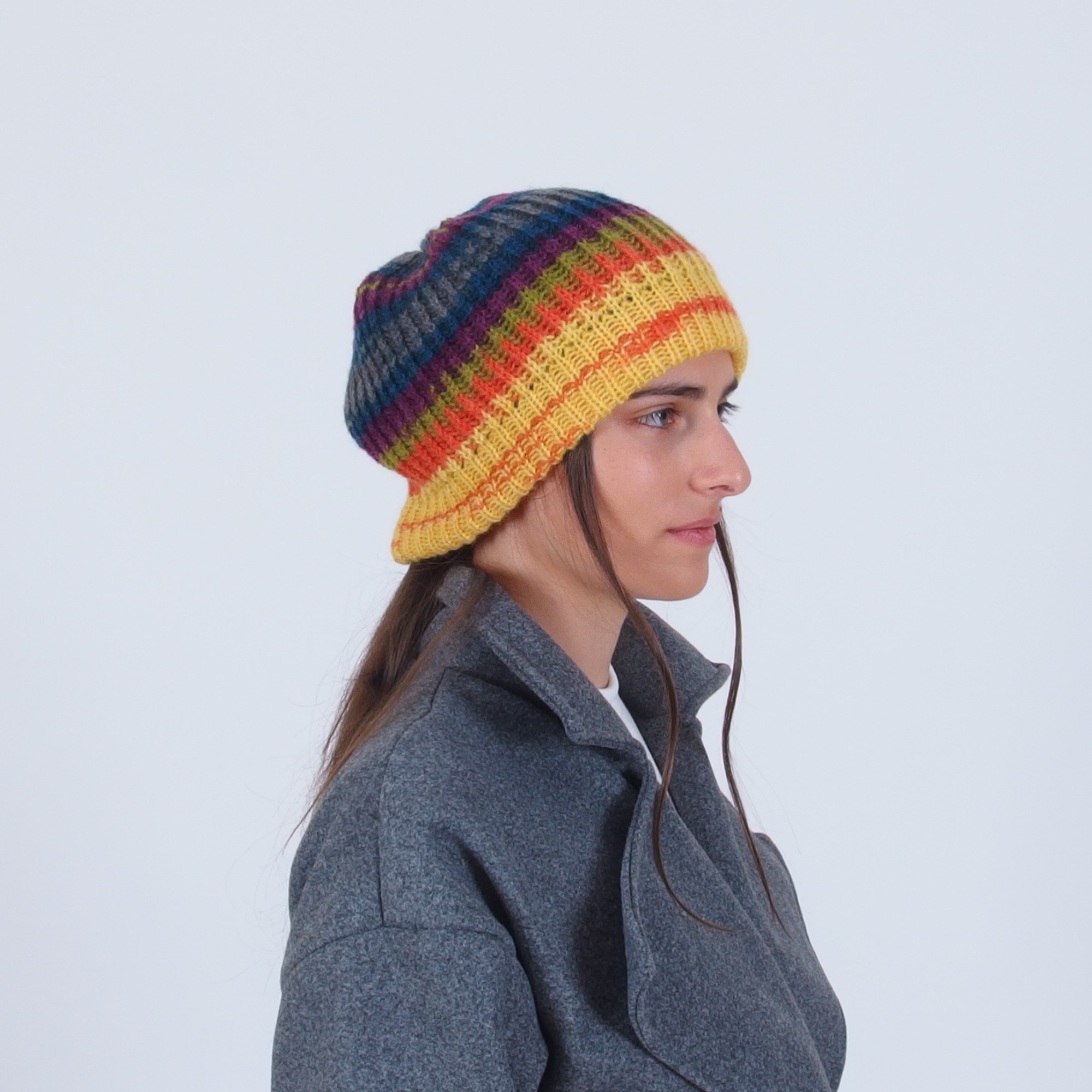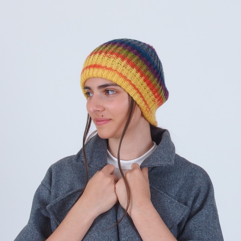Пъстра плетена дамска шапка бийни
