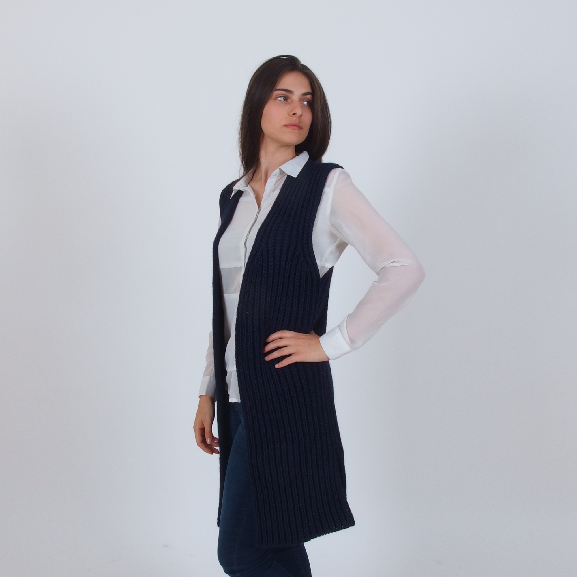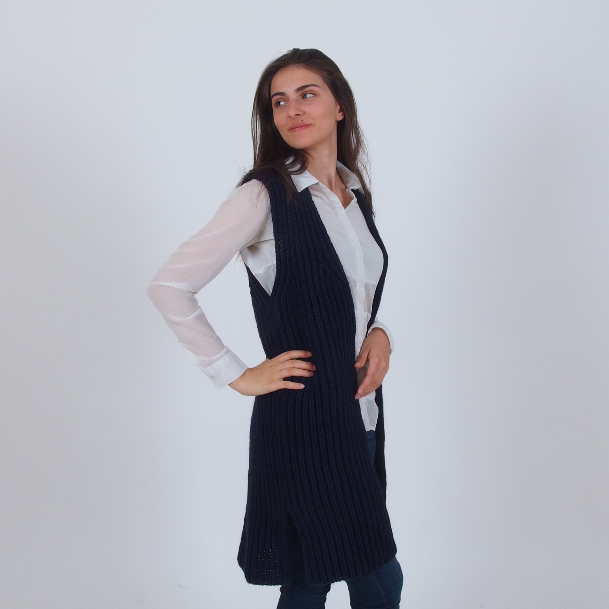 • Ärmellosem Schnitt Damen Strickjacke mit knee-length design