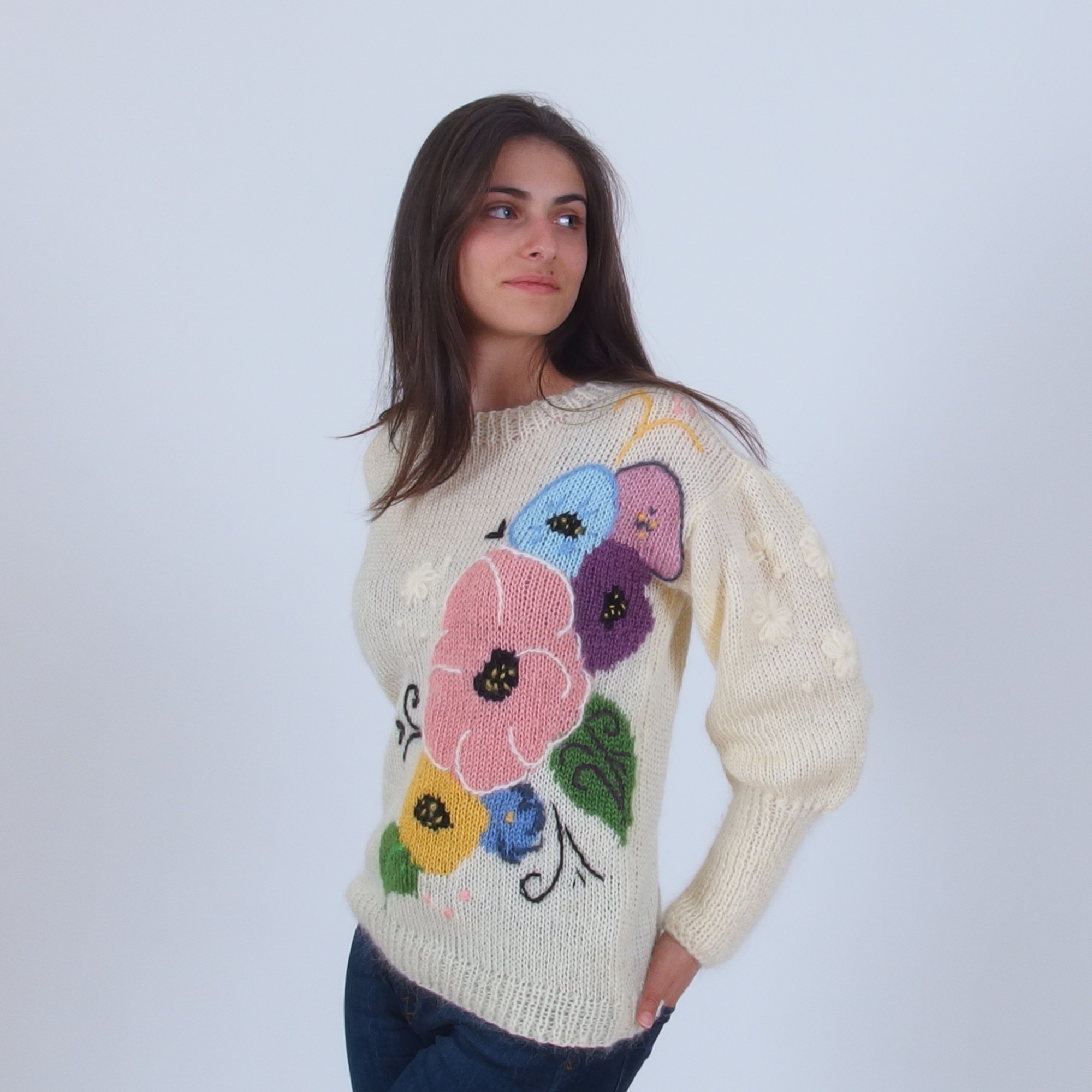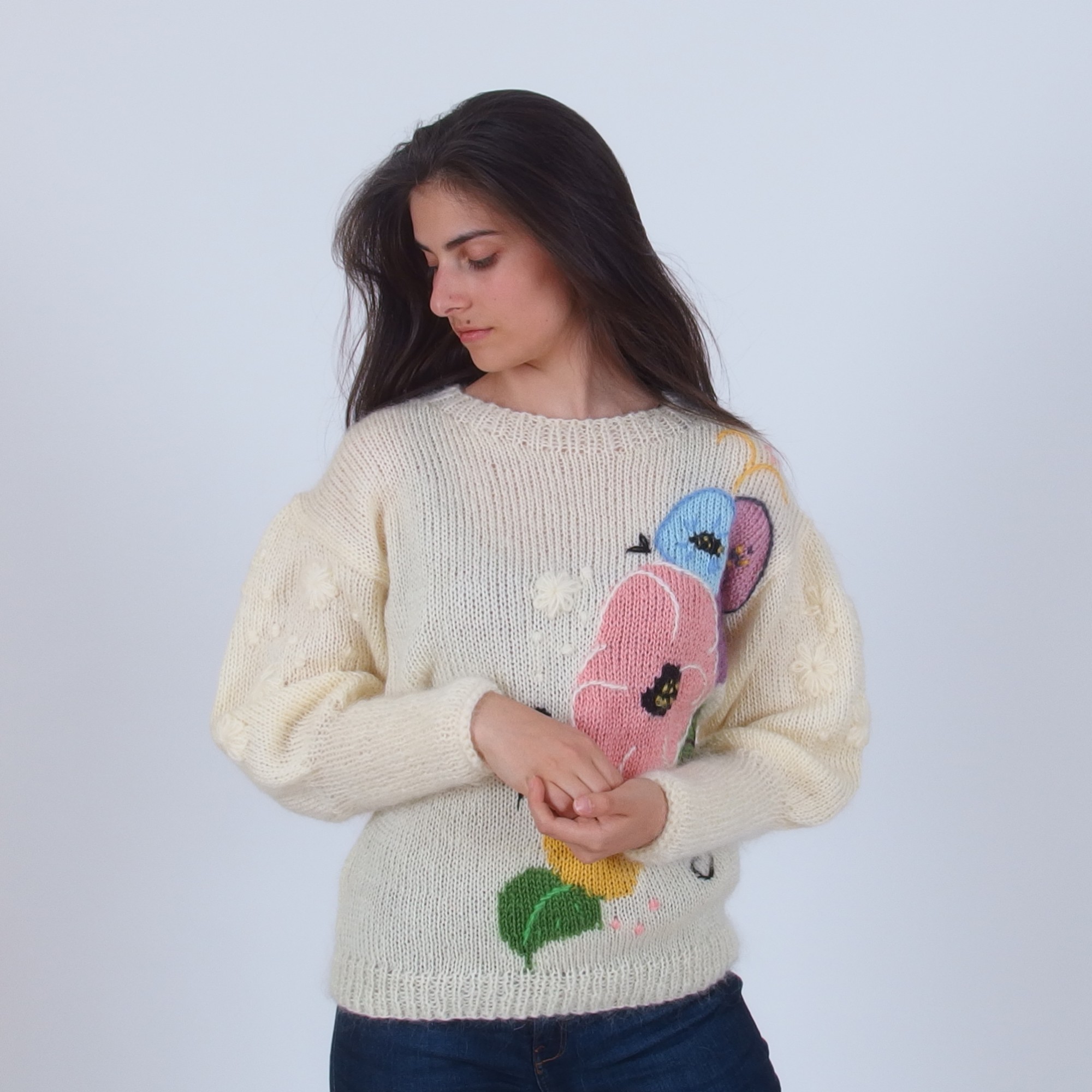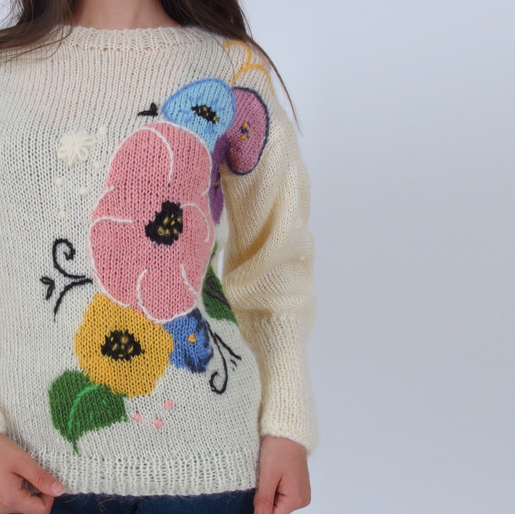 Floral Embroidered Mohair Pullover