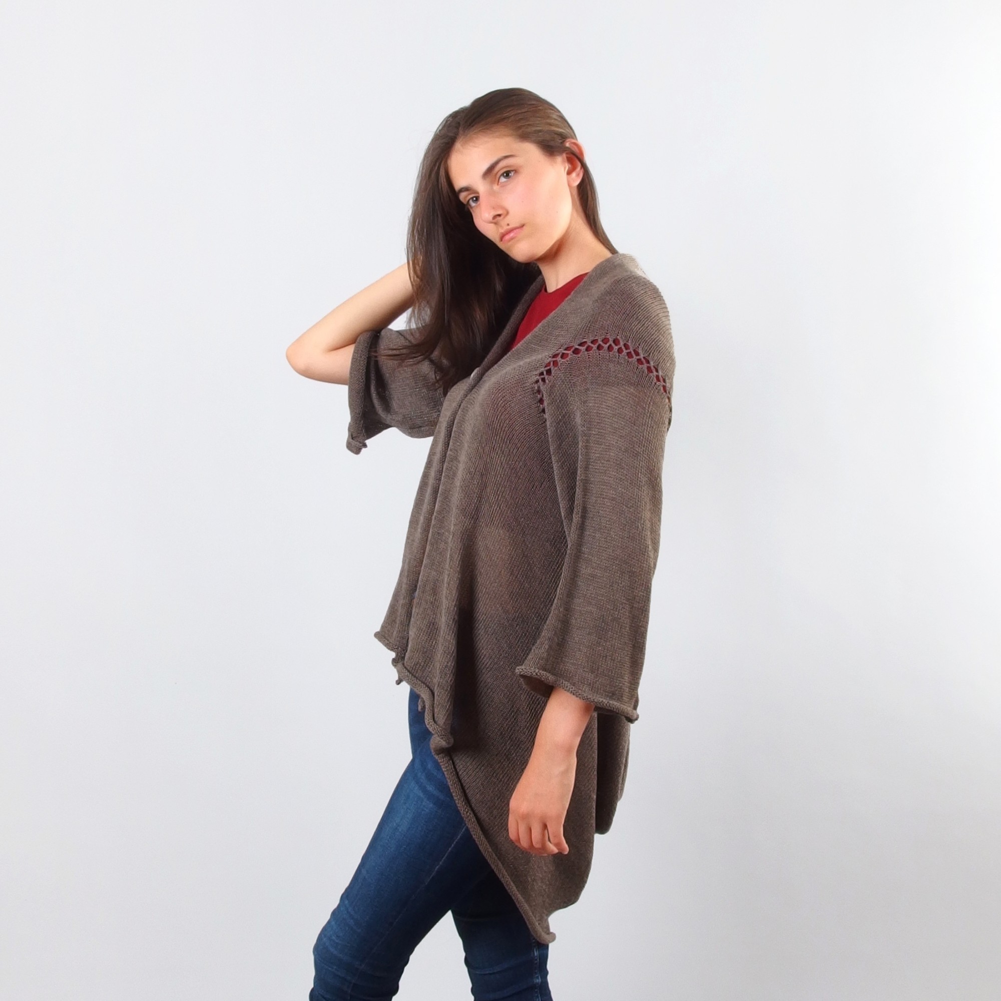 Long Merino High Low Strickjacke