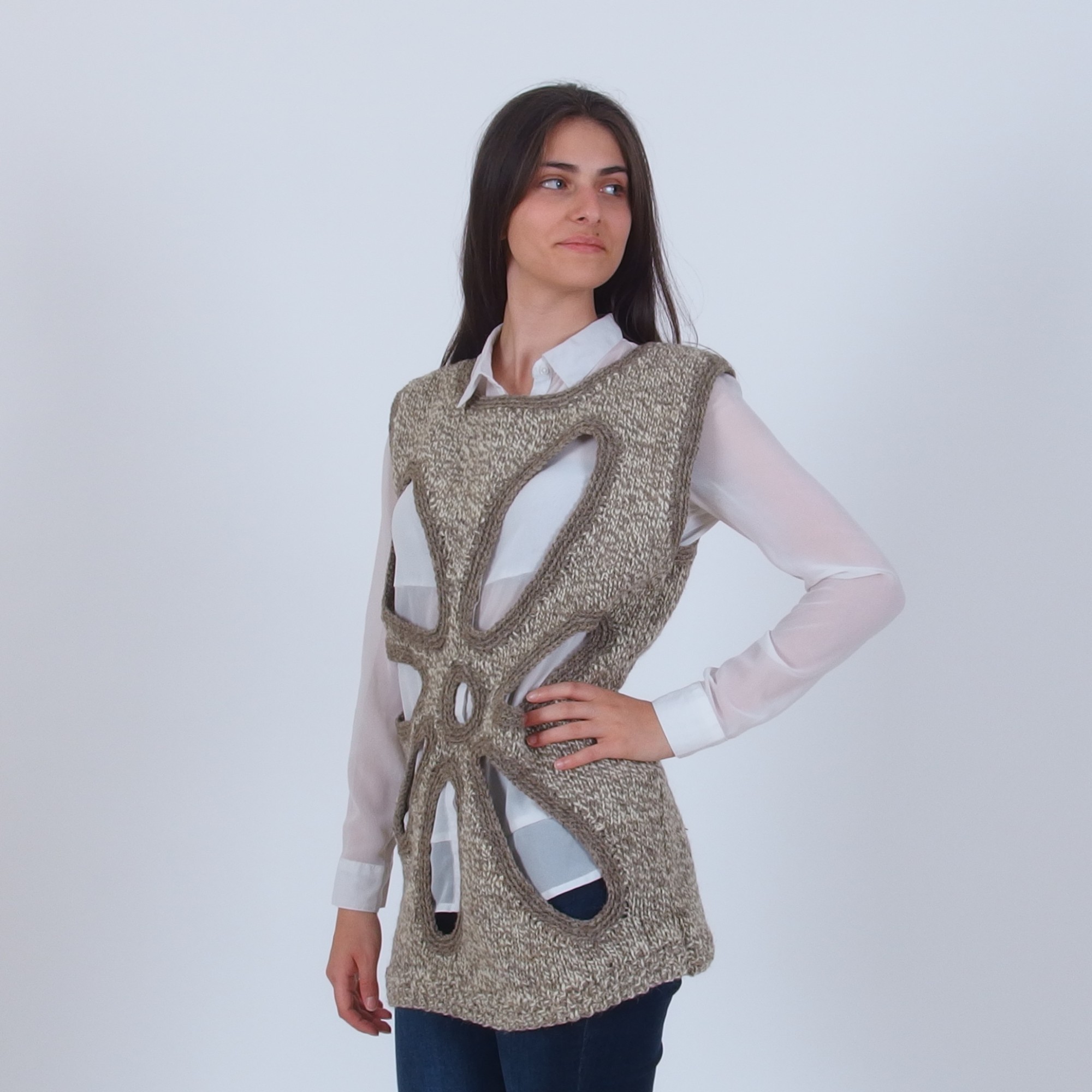 - Hand-knit sleeveless winter sweater for women