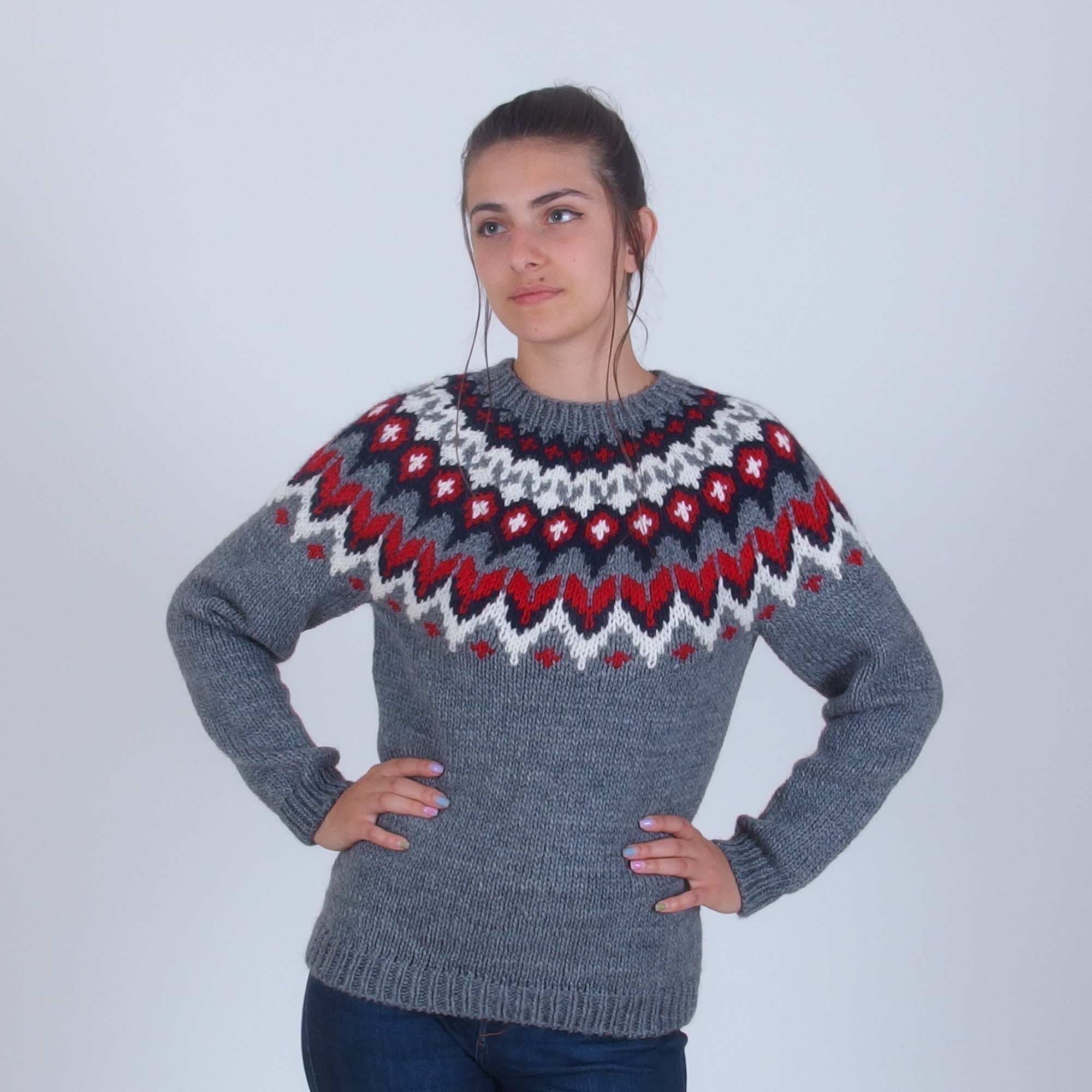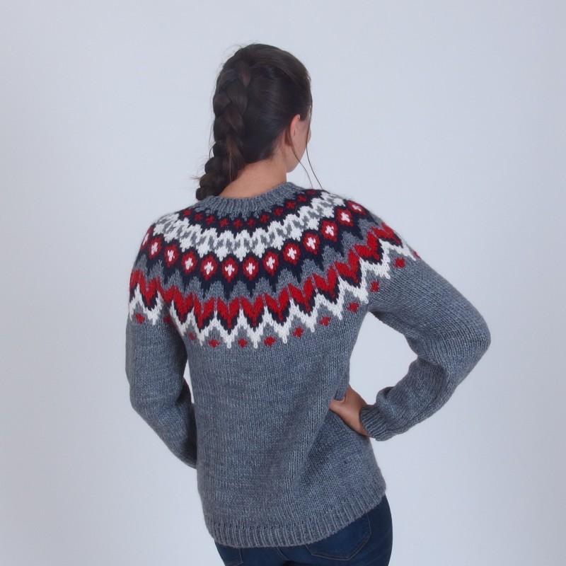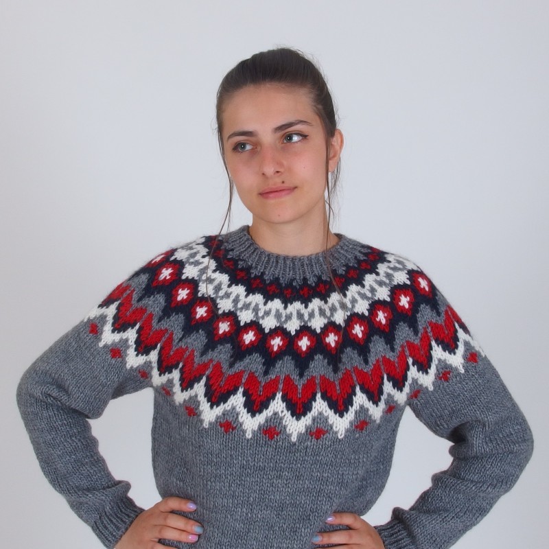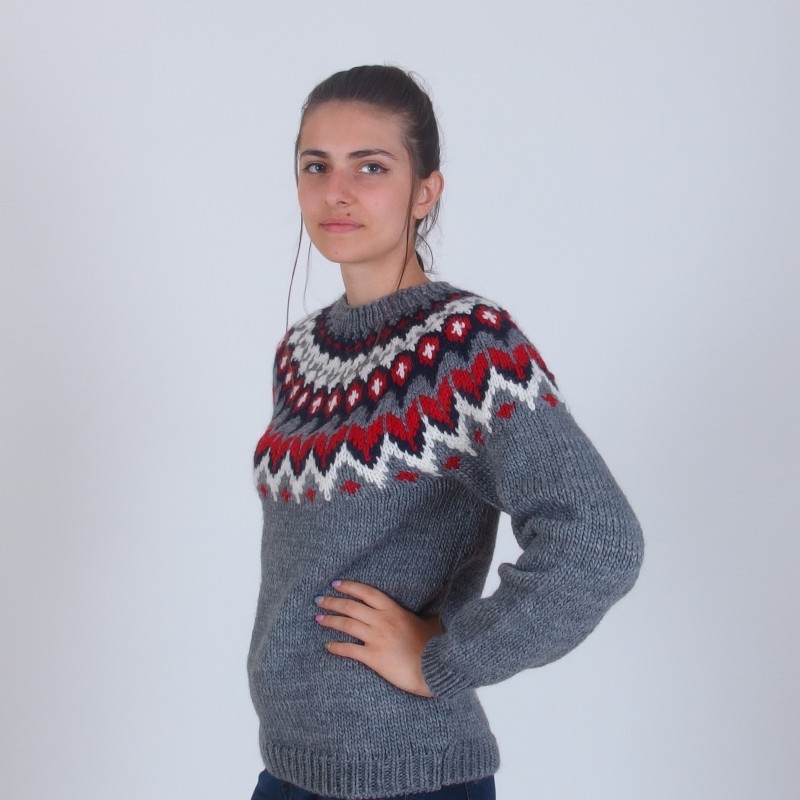 Icelandic Sweater in Red and Gray