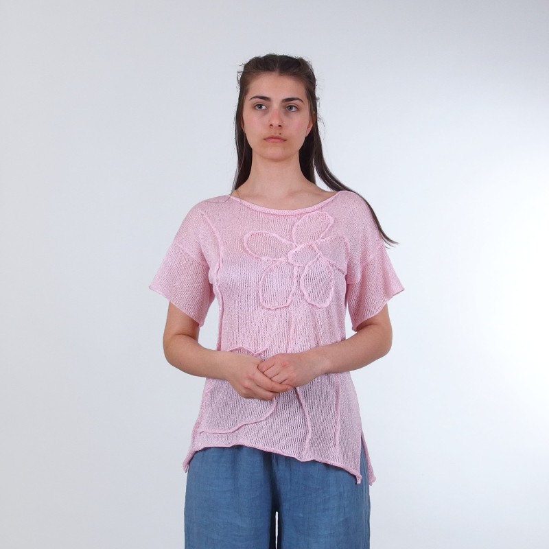 Top floral brodé à manches courtes